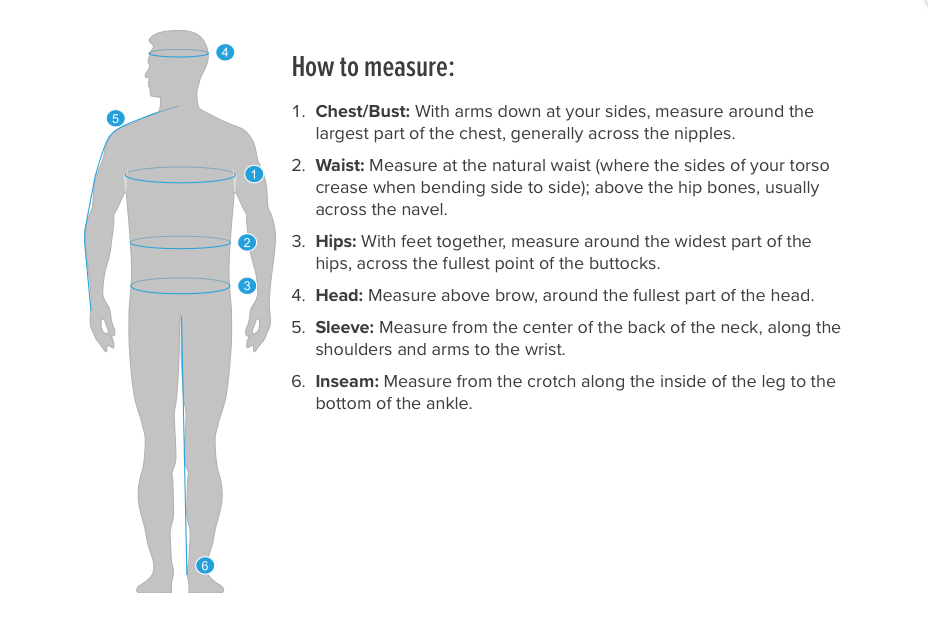 Measure chest, waist, hips, and inseam (in your street clothes / base layers)